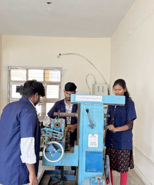 Each lab is constructed with modern facilities. Each lab is equipped with demo experiments along with the university prescribed experiments. The motors and instruments etc., are opened and exhibited on tables in the laboratories for clear understanding of the students. In Electrical Measurements Lab, Power electronics Lab and the Networks lab each student operates on only one set-up independently. In the Power Electronics lab and Networks Lab each set-up is customized and equipped with an oscilloscope, Ac and regulated Dc power supplies, digital panel maters and bread boards. In the Control Systems Lab apart from the prescribed equipment, a highly sophisticated set-up supplied by M/s.Techtrack, futuretech is available to study the response to various up dates to the system. The DC & AC Machines Lab has been organized on the industrial pattern. These laboratories have been established with internal expertise.