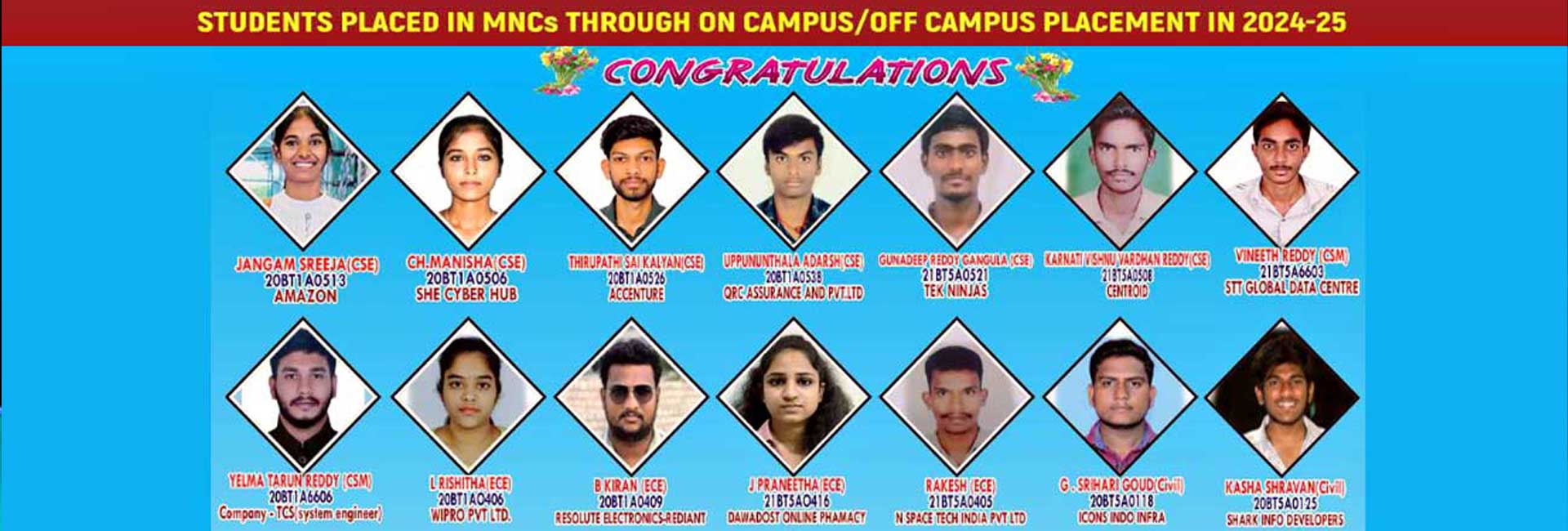At VCET, we always believe in equipping our students with the right talent and personality to face the industry requirements. Our focus on placement centers on creating new approaches to attract the best from the industry to our campus. The placement cell in our institute is taking care of in-plant training, apprentice training along with placement activities & is headed by Dr. Joga Jaya Prakash Reddy, Assoc. Professor,to assist the students in career guidance, placement and to liaison with Business Institutions and Industries.